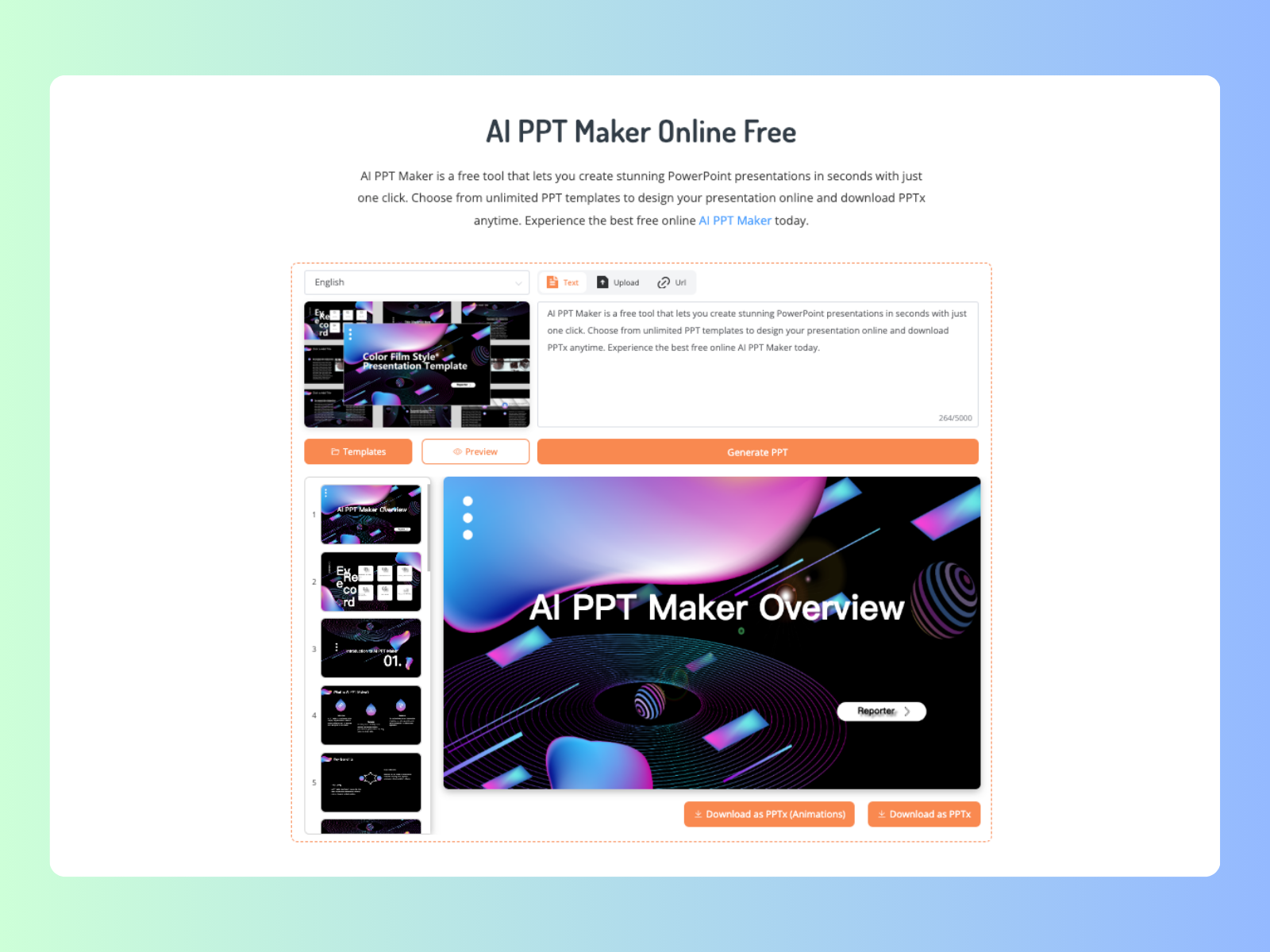 AIPPTMaker.ai is an advanced AI-powered tool designed to simplify and revolutionize the way you create presentations. With just a single click, you can generate unique, high-quality PowerPoint presentations within seconds.
