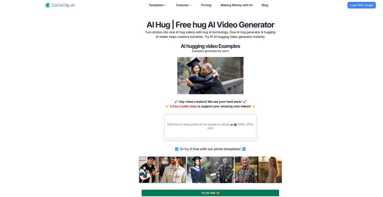 Al Hugging Video Generator – The free AI hug generator that helps creators effortlessly bring ideas to life and expand their reach! Claim daily free credits to easily create viral videos and let your creativity shine!