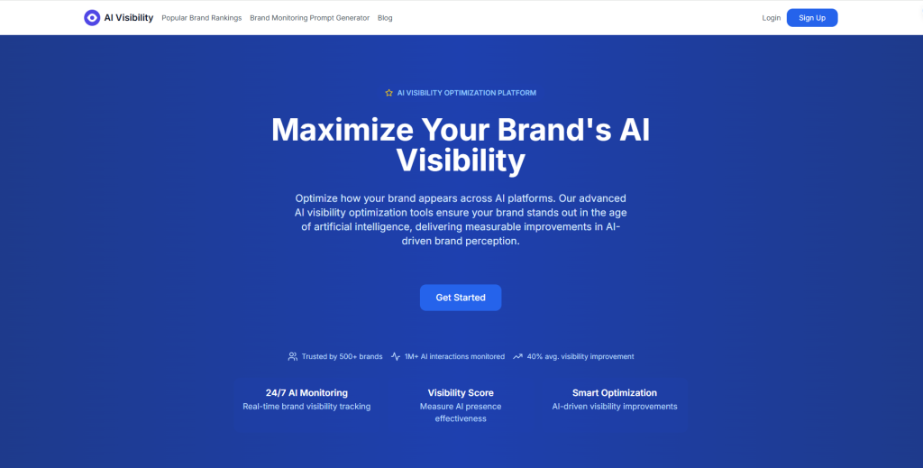 AIVisibility is a comprehensive platform that provides full-scale SEO and content marketing support for webmasters and digital marketers