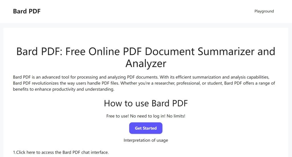 Elevate your PDF document processing and analysis with Bard PDF, a cutting-edge tool that revolutionizes the field. With its efficient summarization and analysis capabilities, Bard PDF completely transforms the way users handle and interpret PDF files.