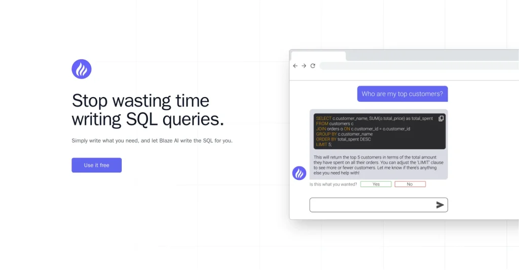 Blaze SQL ai tool is a powerful tool that is revolutionizing the way data is processed and analyzed. It combines the power of artificial intelligence (AI) and natural language processing (NLP) to provide insights that are both accurate and actionable. This tool is a game-changer for businesses that need to quickly analyze large amounts of data and make informed decisions. With Blaze SQL ai tool, businesses can quickly extract meaningful information from raw data, identify trends, and make better decisions. Furthermore, the tool can be used to develop predictive models and automate processes, allowing businesses to become more efficient and agile. Blaze SQL ai tool is a must-have for businesses that want to stay ahead of the competition and make the most of their data.
