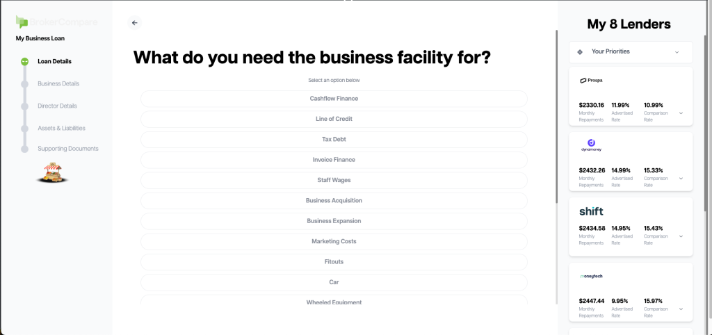 BrokerCompare leverages advanced AI technology to seamlessly match you with the best loan options and efficiently manage the entire application process, enabling you to compare and select loans 50% faster than traditional methods.