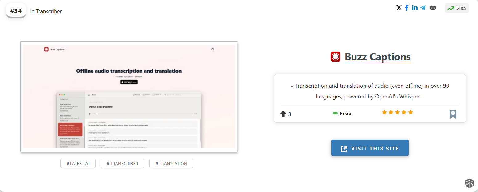 Transcription and translation of audio (even offline) in over 90 languages, powered by OpenAI’s Whisper