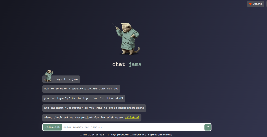 AI creation of personalized Spotify playlists through a fun and interactive chat interface