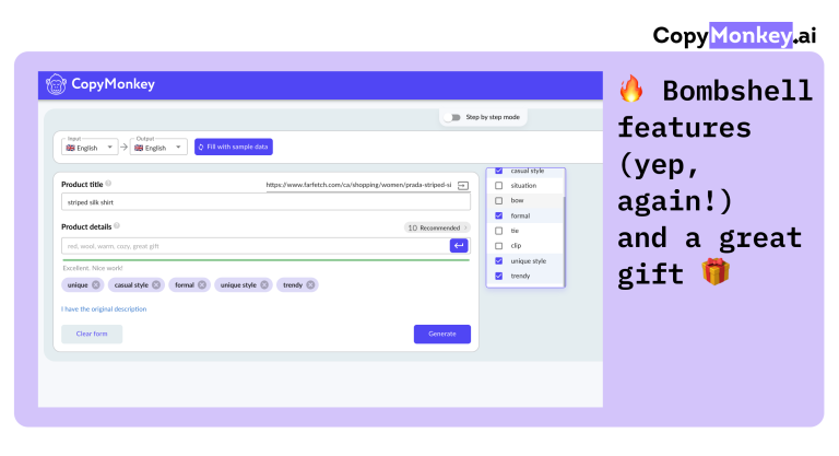CopyMonkey.ai is a revolutionary AI-driven copywriting platform that helps businesses create high-converting copy quickly and easily. With CopyMonkey.ai, you can generate effective copy for emails, ads, landing pages, product descriptions, and more in just a few clicks. The AI-driven engine takes into account the customer’s profile, purchase history, and other contextual factors to generate personalized copy that resonates with your audience. Plus, it offers extensive insights into the effectiveness of your content — so you can make informed decisions about what works best for your business.