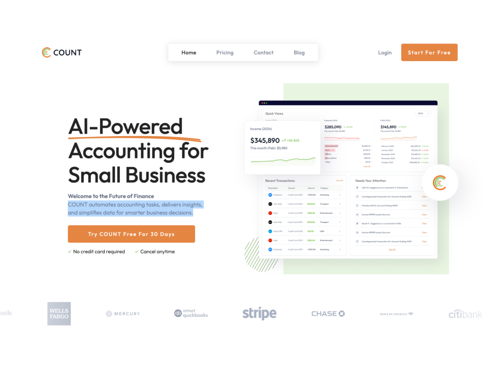 COUNT is an AI-driven accounting software that simplifies accounting for business owners and entrepreneurs by avoiding complex jargon and focusing on the automation of routine tasks.
