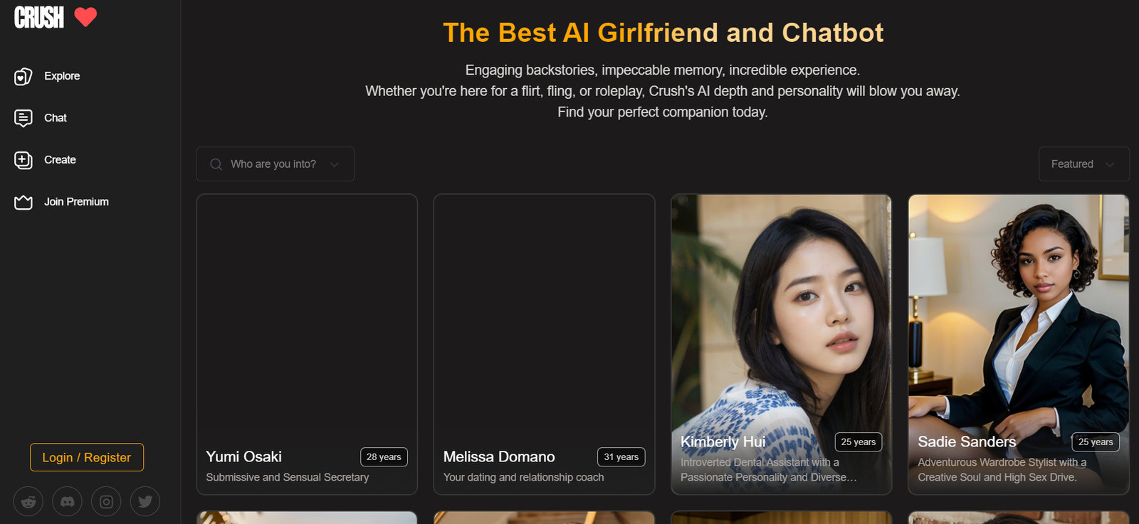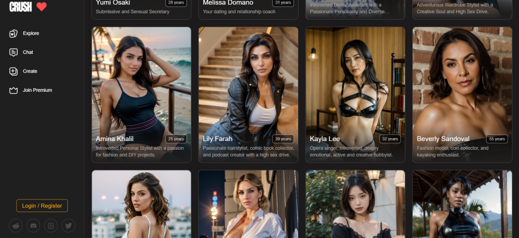 CRUSH is an AI companion platform allowing users to engage in conversations with NSFW AI characters. CRUSH models delight with intimate companionship, voices, and compelling figures.