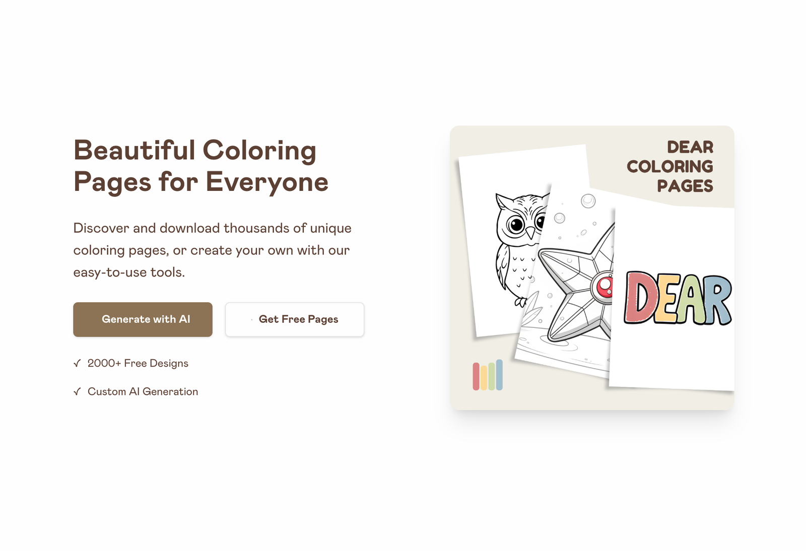 Dear Coloring Pages is your creative destination for free and printable coloring pages suitable for all ages. Using AI, Dear Coloring Pages offers both curated collections and the ability to create your own unique coloring pages in seconds.