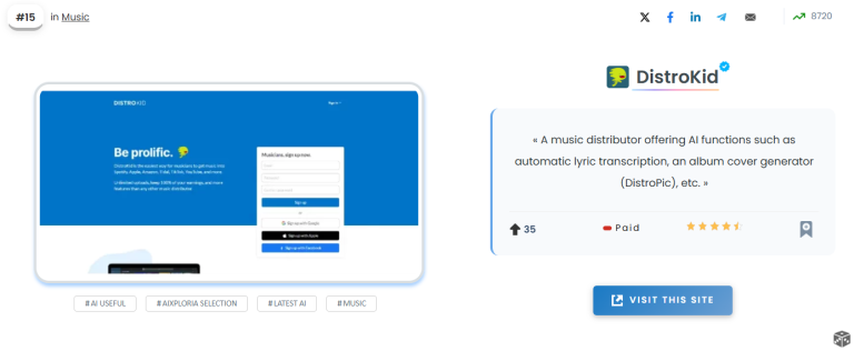 A music distributor offering AI functions such as automatic lyric transcription, an album cover generator (DistroPic), etc