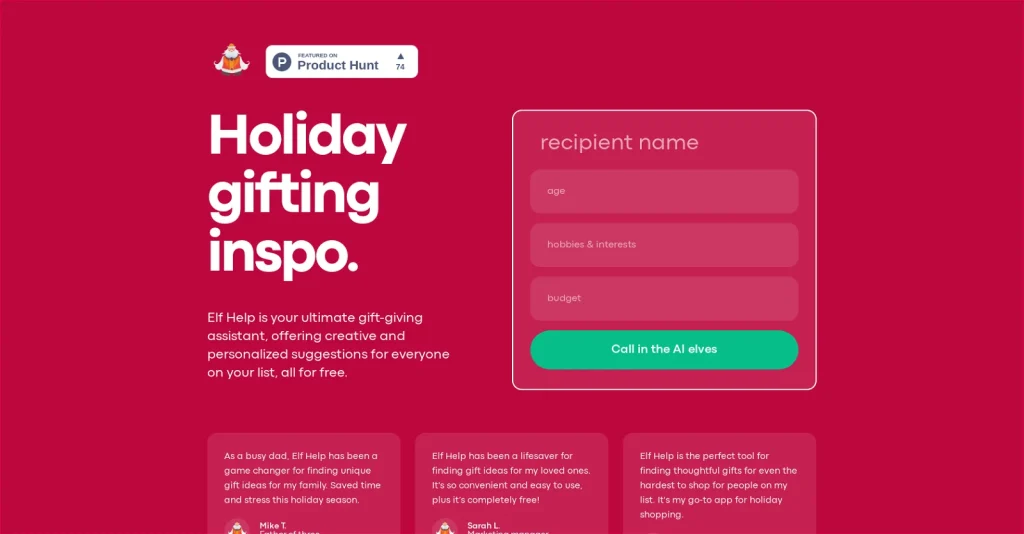 Elf Help is an AI tool that helps businesses streamline their customer service operations. It is an intelligent virtual assistant that can automate customer service tasks and provide 24/7 support. With Elf Help, businesses can reduce their customer service costs, improve customer satisfaction and increase customer loyalty. The AI tool can be integrated with existing customer service platforms, allowing businesses to easily manage customer service inquiries and provide personalized customer service. Elf Help is designed to understand customer queries and respond in a natural, conversational tone. It can also identify customer sentiment and provide tailored responses to each customer, making it easier for businesses to provide a personalized customer service experience. Furthermore, Elf Help can provide detailed analytics on customer service performance and identify areas for improvement. By leveraging the power of AI, businesses can provide a better customer experience and improve customer loyalty.