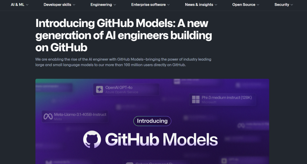 A set of LLM models made freely available to developers by Microsoft: Llama 3.1, GPT-4o, GPT-4o mini, Phi 3, Mistral Large 2, etc.