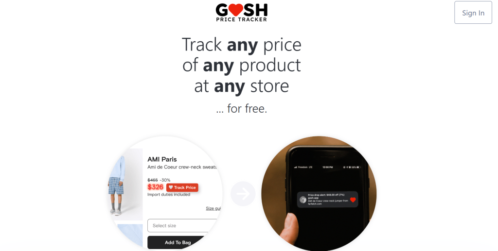 GOSH.app is a free AI Powered Price Tracking Tool and Price Tracking Chrome Extension. Track product prices and stock levels at any store, anywhere using the magic of AI. Get instant alerts when prices drop, or the product comes back into stock.