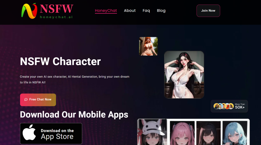 HoneyChat.ai is a next-generation AI-driven platform offering NSFW (Not Safe For Work) AI companions. It features AI girlfriends and interactive chatbots, providing users with personalized, intimate, and engaging conversations.