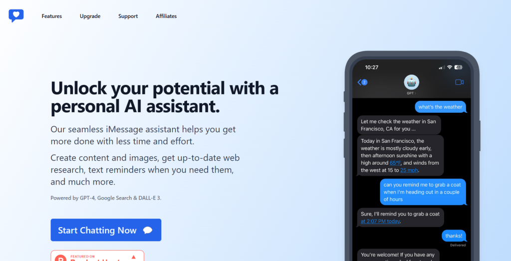 Chat with ChatGPT in an application running on Iphone and Imessage