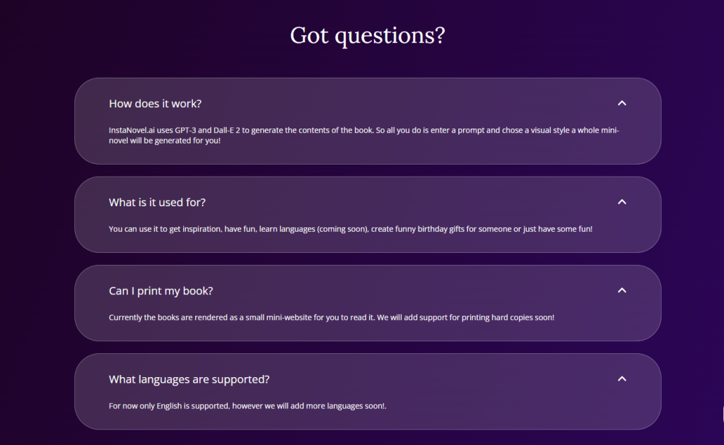 InstaNovel AI is the perfect tool for aspiring authors and busy professionals who don’t have the time to write a novel. InstaNovel AI leverages the latest in Natural Language Processing (NLP) to generate complete novels in minutes. With InstaNovel AI, you can quickly and easily create your own stories without having to spend hours manually typing out each sentence. Simply enter a prompt, select a visual style, and InstaNovel AI will generate a mini-novel for you! Now you can write a book faster than ever before!
