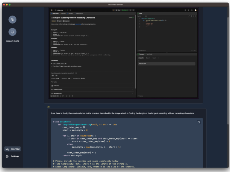 Whether you’re a seasoned developer or a fresh graduate, Interview Solver provides you with the assistance and resources you need to showcase your skills and impress your interviewers.