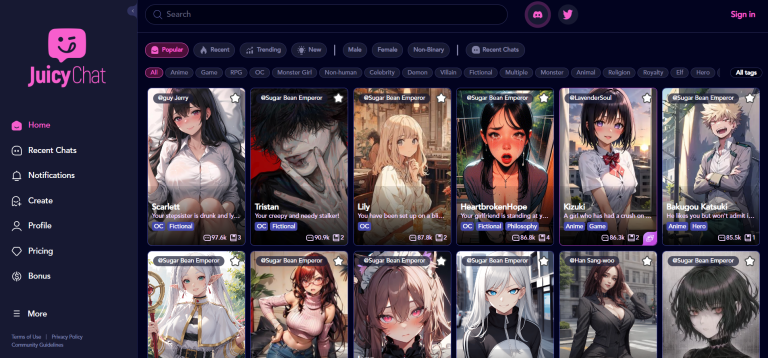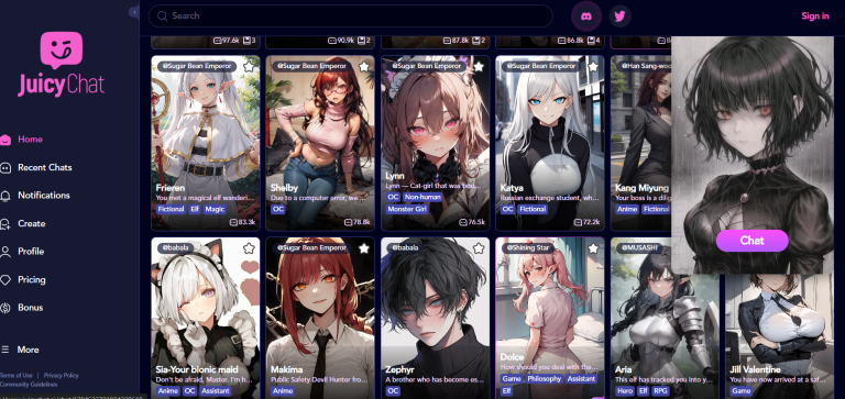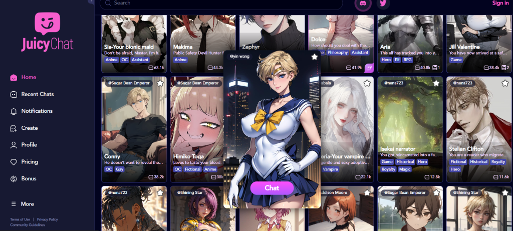 JuicyChat.ai is an AI tool for creating engaging NSFW character chat interactions. Users can interact with a variety of unique characters from different genres, ideal for role-playing and storytelling enthusiasts.