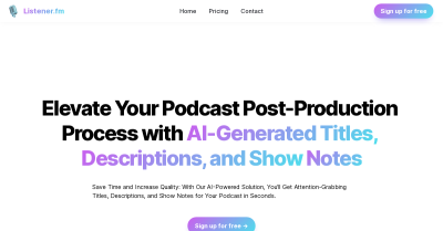 Listener.fm is an AI tool that is revolutionizing the way music is discovered and enjoyed. It is designed to help music lovers find new music they will love and to provide the perfect soundtrack for any moment. It uses powerful AI algorithms to analyze music and create personalized radio stations based on the user’s taste. It also has an extensive library of music from all genres, which allows for a wide variety of choices. The interface is simple and intuitive, making it easy to find the perfect music for any occasion. It also has a social aspect, allowing users to connect with other music lovers and share their favorite tunes. With Listener.fm, discovering new music has never been easier or more enjoyable. Whether you’re looking for a new jam for your next party or just want to find something to relax to, Listener.fm has you covered.