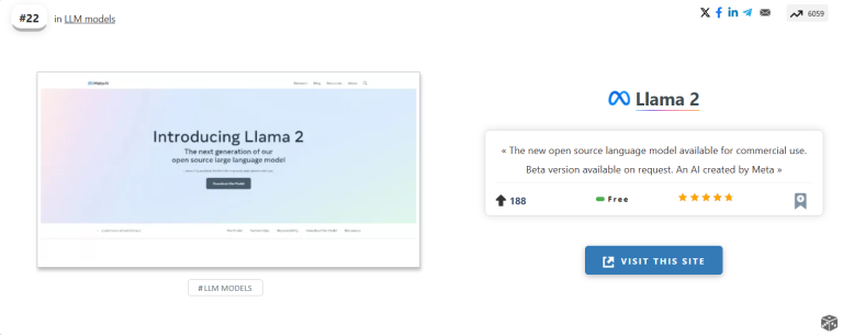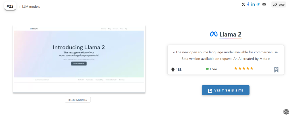 The new open source language model available for commercial use. Beta version available on request. An AI created by Meta