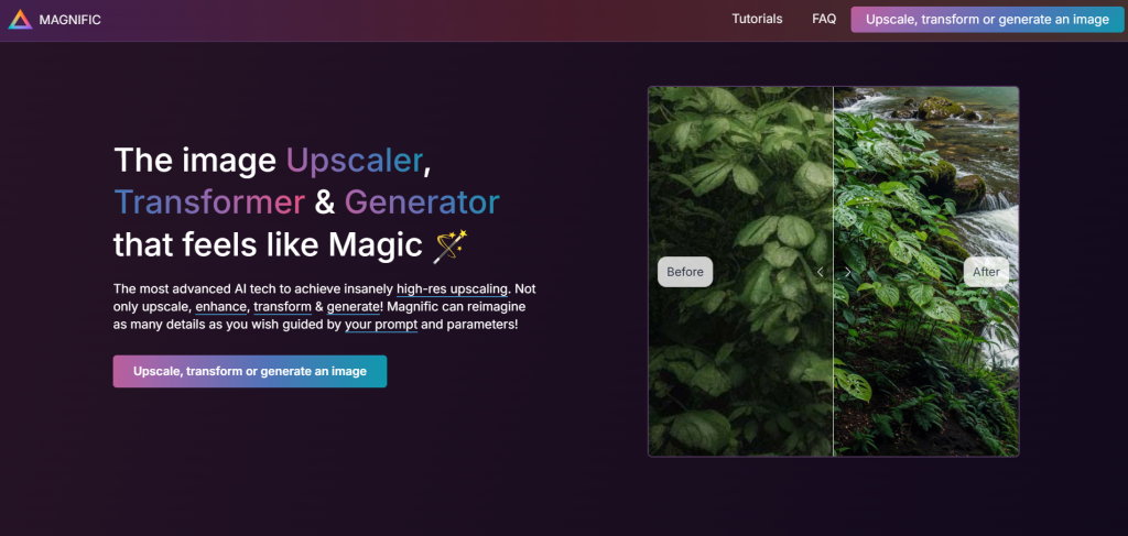 Improve the resolution of your images (upscale) and also enhance their quality (pixels). This AI is also capable of hallucinating and reimagining your illustrations