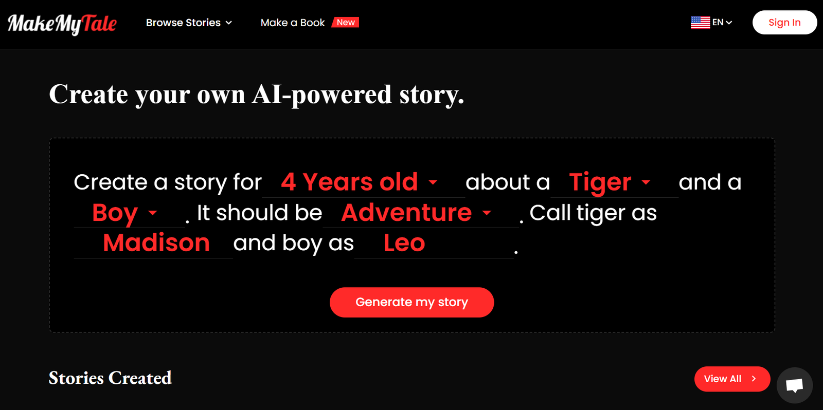 0%Similar to MakeMyTale ai