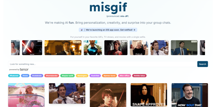 Replace the face of a character in a GIF with your own, thanks to an AI technique called Faceswap. Also includes editing tools!