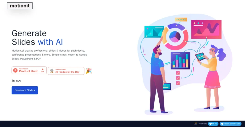 Motionit.ai is an AI tool that helps businesses automate routine tasks and processes. It offers a range of features that enable users to quickly and easily create, manage, and monitor automated workflows. The platform also provides integrations with popular third-party services and applications, allowing users to easily connect their existing systems and processes. With Motionit.ai, businesses can save time and resources, increase efficiency, and improve customer service. The tool is designed to be user-friendly and intuitive, making it easy for businesses of any size to get up and running quickly. It also provides a range of analytics and reporting features, enabling users to track their progress and identify areas for improvement. Overall, Motionit.ai is an invaluable tool for businesses looking to streamline their operations and maximize their productivity.