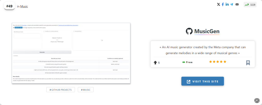 An AI music generator created by the Meta company that can generate melodies in a wide range of musical genres