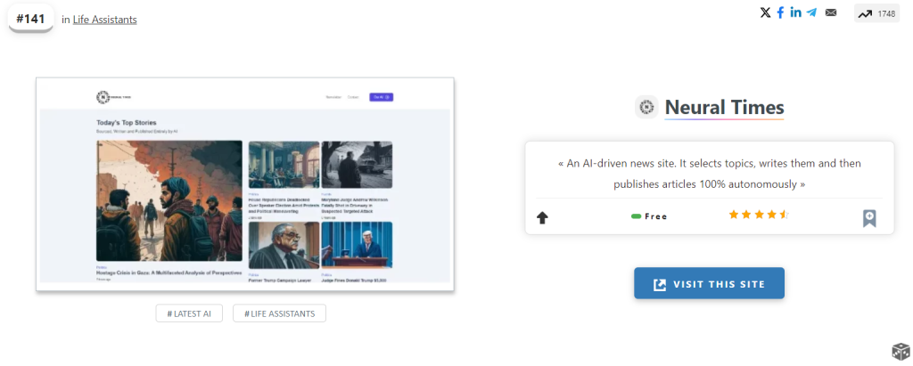 An AI-driven news site. It selects topics, writes them and then publishes articles 100% autonomously!