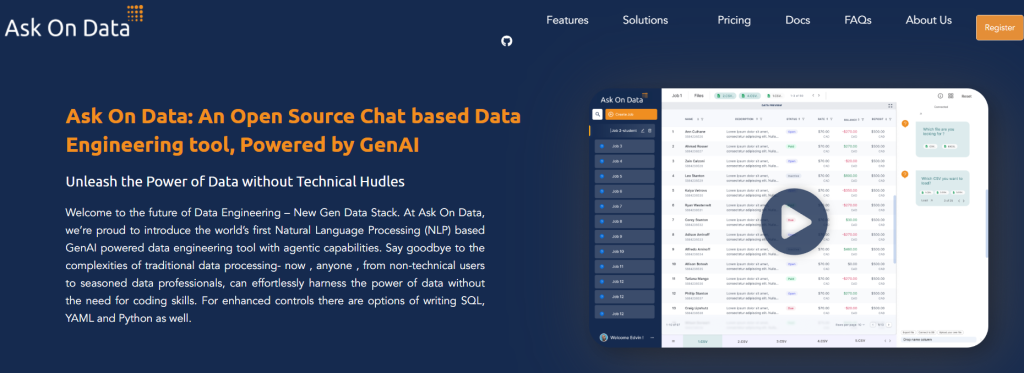 Ask On Data is a chat based AI powered open source Data Engineering/ ETL tool. With agentic capabilities and pioneering next gen data stack, Ask On Data can help in creating data pipelines via a very simple chat interface.