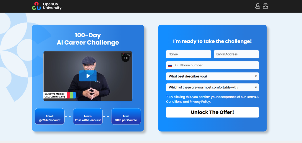 Take up the challenge of completing a 100-day course on artificial intelligence. Learn the basics of Deep Learning and progress to more technical challenges