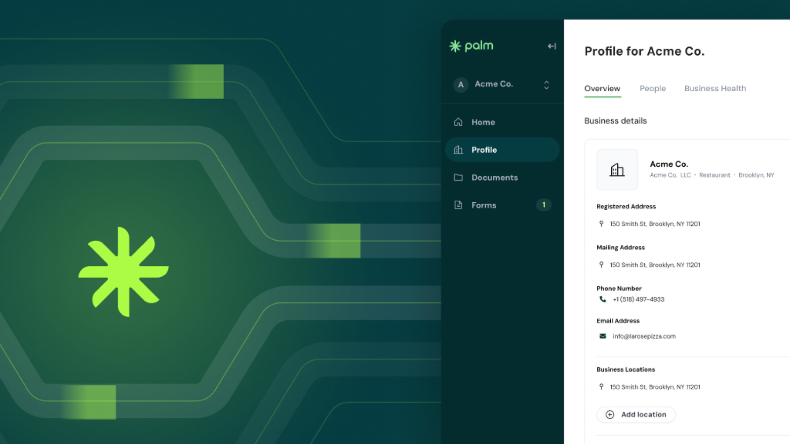Palm provides a data wallet to small businesses where they can keep, manage, and update their key identity data and documents. Palm’s AI agent helps business owners file key government filings and forms automatically, and notifies them when filings are due.