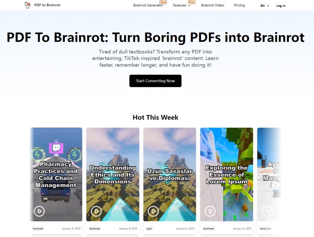 PDF to Brainrot makes static PDFs come alive by converting them into interactive and innovative formats.