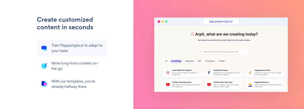 peppertype.ai is an AI-powered tool that speeds up the writing process. With a library of AI-generated text, you can quickly find what you need for blog posts, emails, or other documents. The tool also offers editing features to help you personalize and optimize your content for any audience. With the ability to integrate with popular platforms like WordPress and MailChimp, peppertype.ai helps you create high-quality content quickly and efficiently.