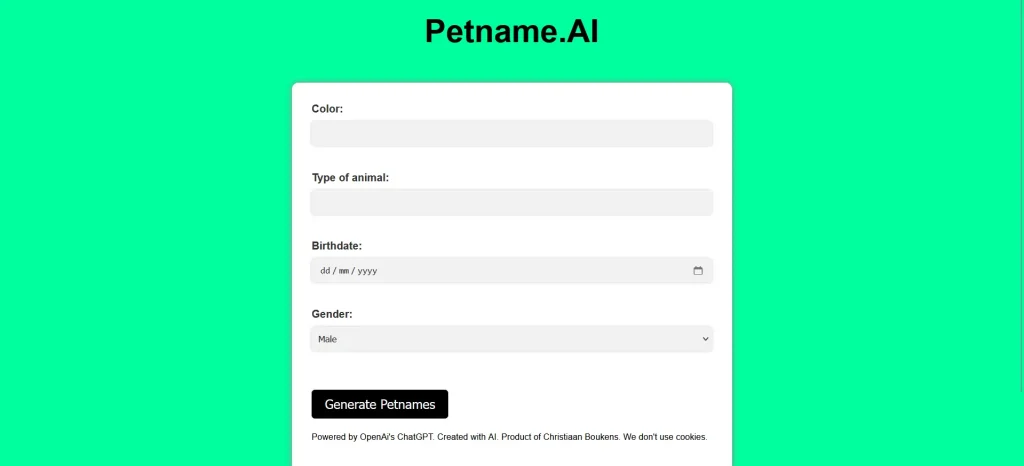 Petname AI is an AI tool that helps you come up with the perfect pet name for your furry friend. Whether you’re looking for something traditional, modern, or something completely unique, Petname AI has you covered. With its easy-to-use interface, you can quickly search through thousands of possible pet names with various filters like gender, breed, and even personality type. This AI tool can also provide you with personalized suggestions based on your pet’s physical characteristics and behavior. Petname AI is designed to make the process of finding the perfect pet name easier and more enjoyable. It’s the perfect tool for anyone looking to give their pet a name that is special and meaningful.