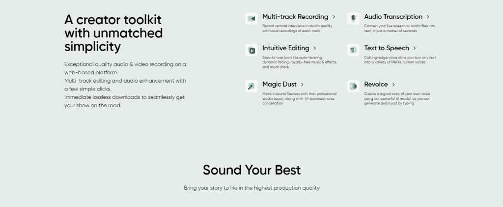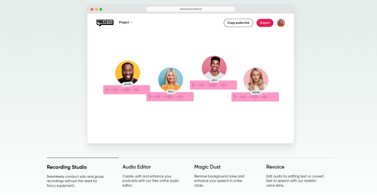 Podcastle makes it easy to record solo or with your team using its powerful recording and editing tools. With its advanced audio processing capabilities, you can easily remove background noise and enhance your speech to make sure that your voice is heard loud and clear. And when you’re done, you can easily share your podcast with the world using Podcastle’s integrated publishing platform.