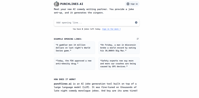 An AI tool to help you create jokes, ideal for comedians and anyone looking to add humor to their daily lives!