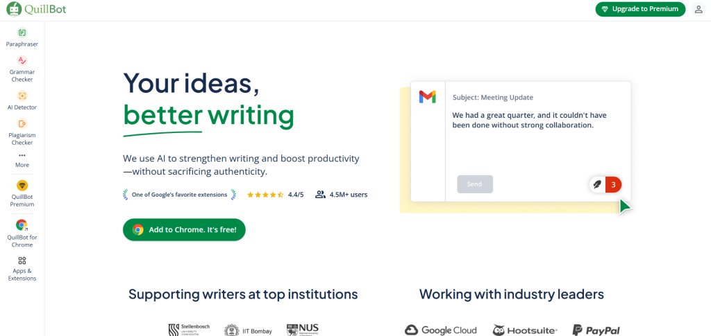 A practical tool for quickly rewriting, checking and improving your texts. Available options: paraphrase, grammar, translation, plagiarism, etc.