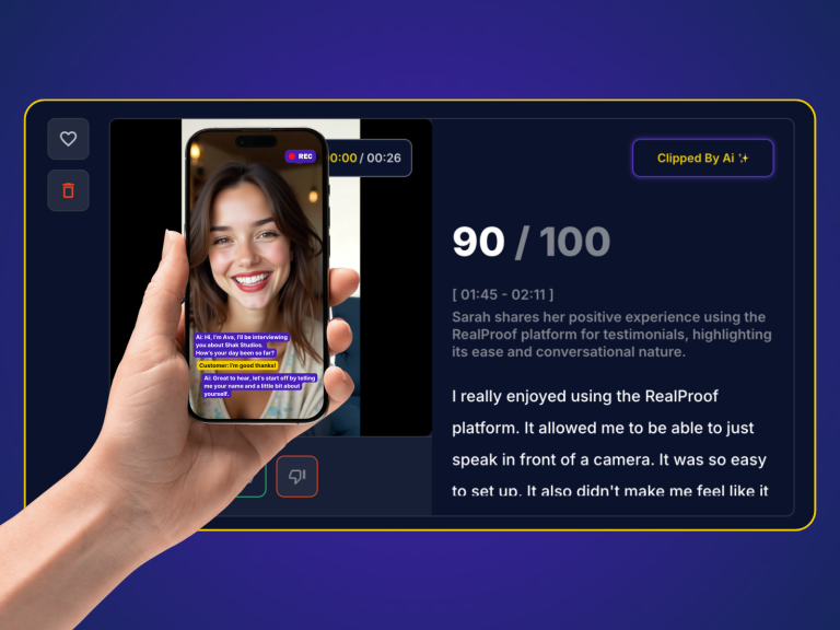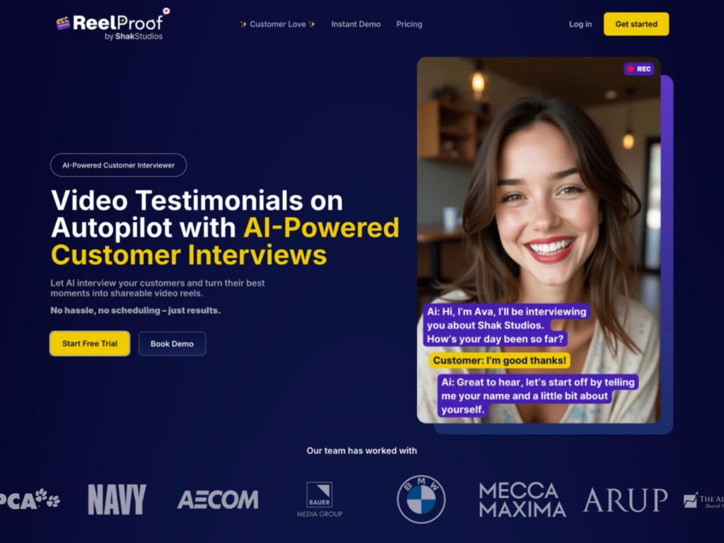 Let AI interview your customers and turn their best moments into shareable video reels. No hassle, no scheduling – just results.