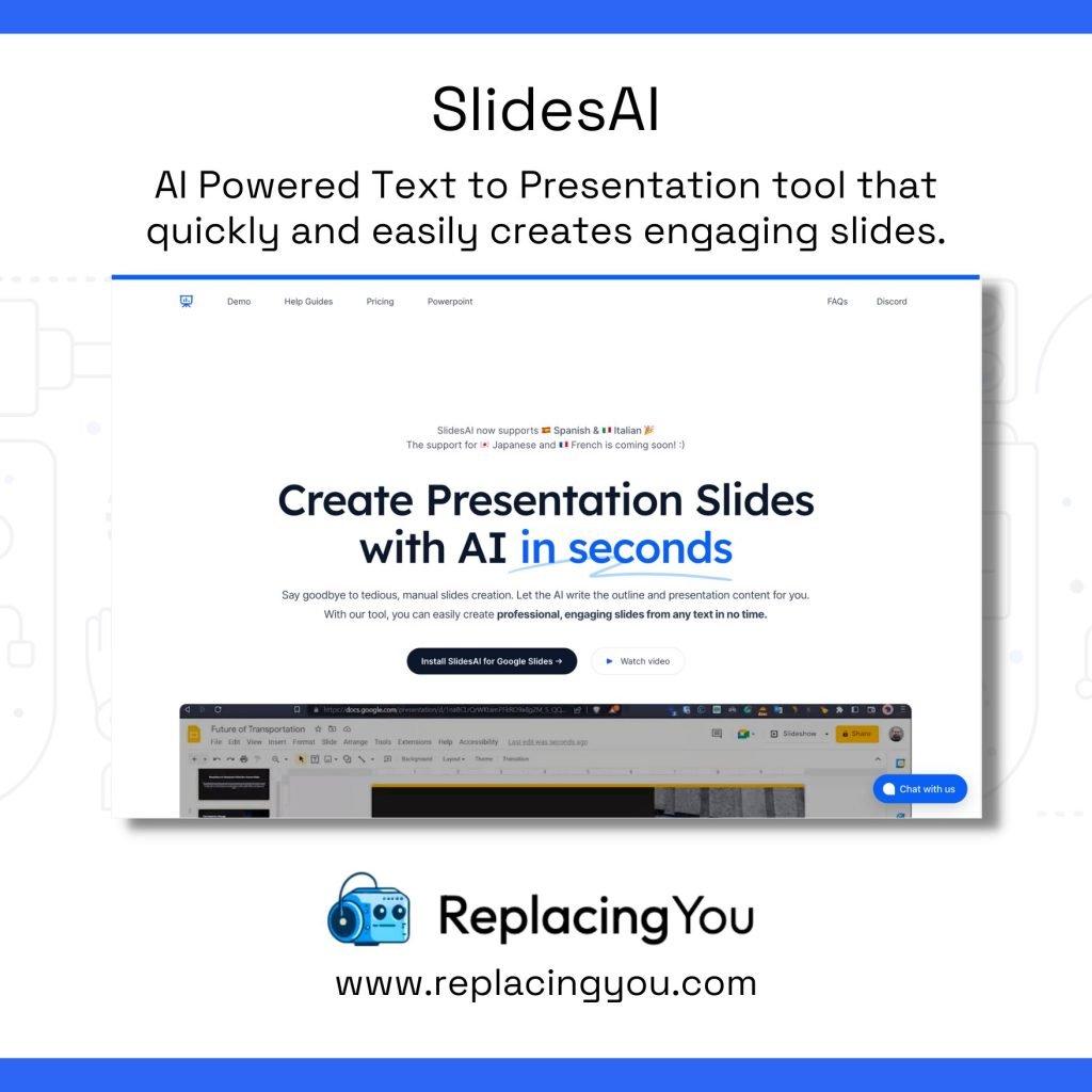 SlidesAI is an AI tool that helps businesses create stunning presentations quickly and easily. It has a powerful AI engine that can automatically generate high-quality slides from text and visuals, making it easy to create engaging presentations. With SlidesAI, you can create presentations with a professional look and feel in no time. It has a range of features that allow you to customize your presentation to your exact needs. You can choose from a variety of templates and customize the design, add images, videos, and more. It also has a built-in AI assistant that can help you optimize your slides for maximum impact. With SlidesAI, you can create beautiful presentations in a fraction of the time it would take to do it manually. It’s a great tool for anyone looking to create professional-looking presentations quickly and easily.