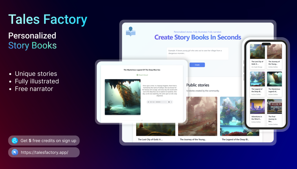 Tales Factory is a revolutionary AI tool that helps businesses create content quickly and easily. It is a powerful tool that uses natural language processing (NLP) and machine learning (ML) to generate content that is tailor-made to the needs of the business. With Tales Factory, businesses can create content that is engaging, relevant, and tailored to the target audience. The AI tool is designed to help businesses create content that is both informative and entertaining. It can help businesses produce content that is optimized for SEO, social media, and other digital marketing platforms. With Tales Factory, businesses can create content that is not only engaging but also effective in driving traffic and generating leads. The AI tool is easy to use and can be used to create content in a matter of minutes. Tales Factory is the perfect tool for businesses looking to create content quickly and easily.