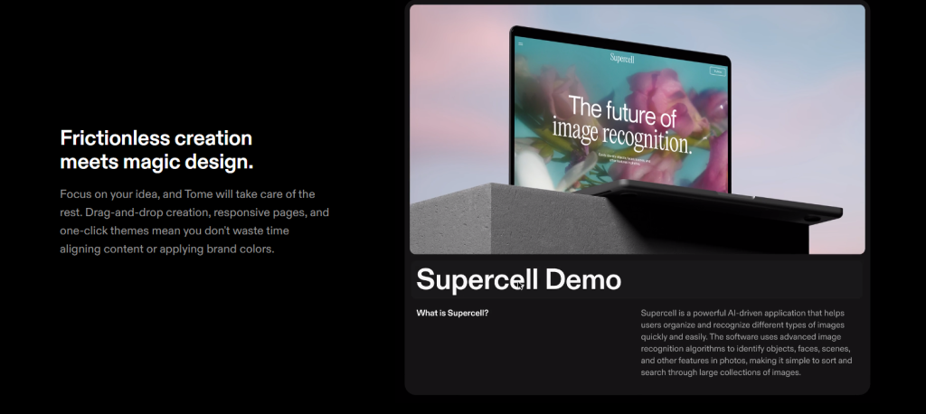 Tome is an AI-powered content curation, creation and publishing tool. With Tome, you can easily build a powerful story with any type of content — from videos and images to text and embeds — meeting all the magic design requirements. You can also embed anything from the web in one place, like YouTube videos, Tweets, Instagram posts, and more.