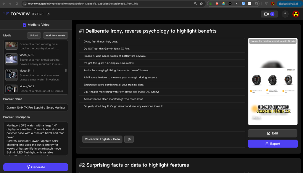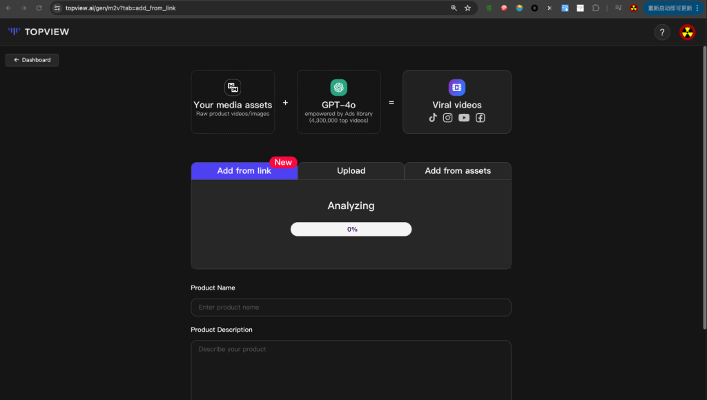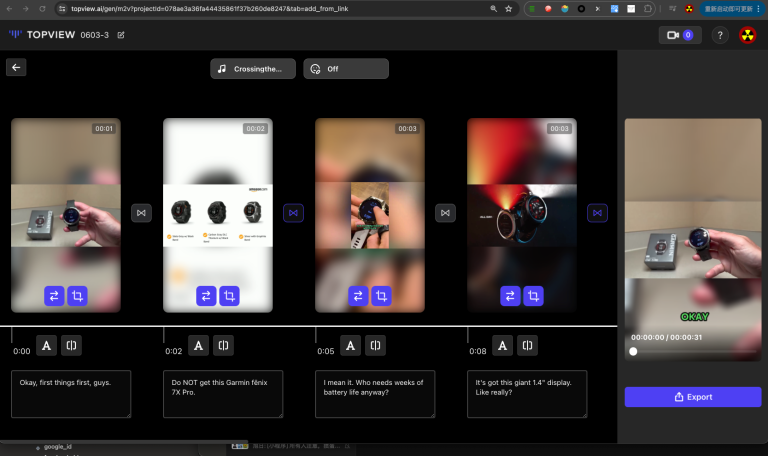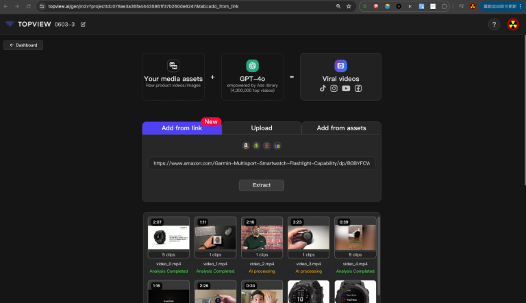 Topview is an online AI video editor that turns your links or media assets into viral videos in one click, empowered by Youtube & Tiktok & Facebook ads library, best editor to create, edit, and enhance videos using AI.