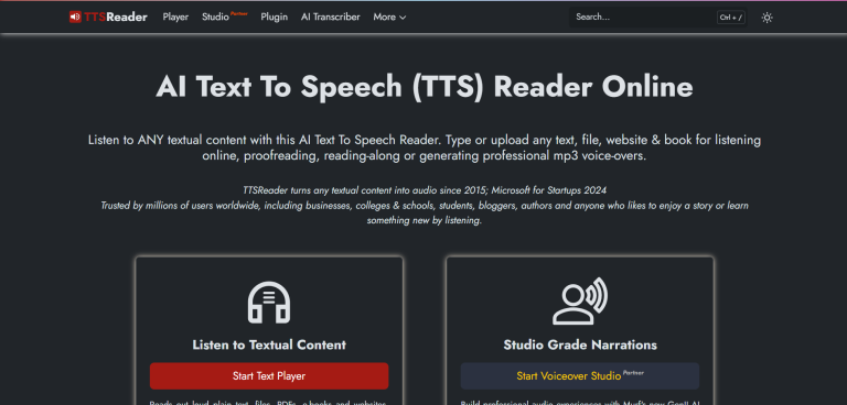 A truly free online text reader that can even read entire web pages or be installed as a Chrome extension