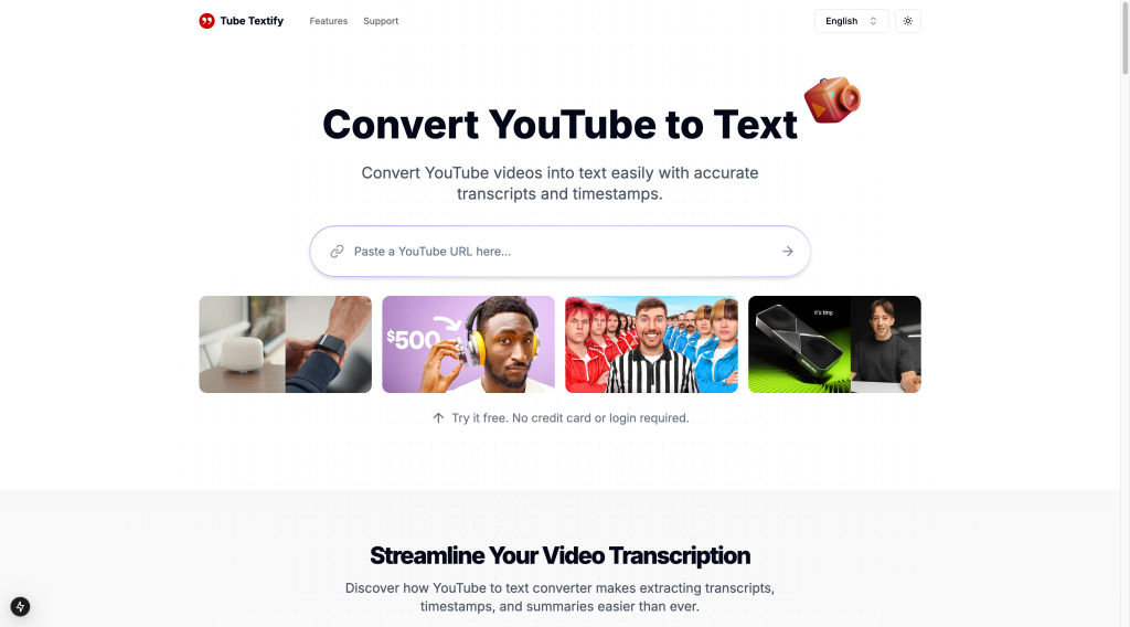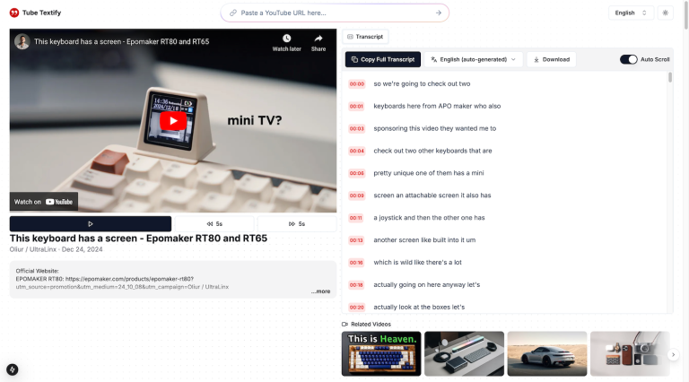 Tube Textify allows you to convert YouTube videos into text easily with accurate transcripts and timestamps.