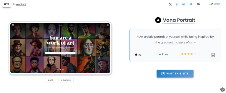 Vana Portrait AI has received 0 reviews with an average rating of  out of 5