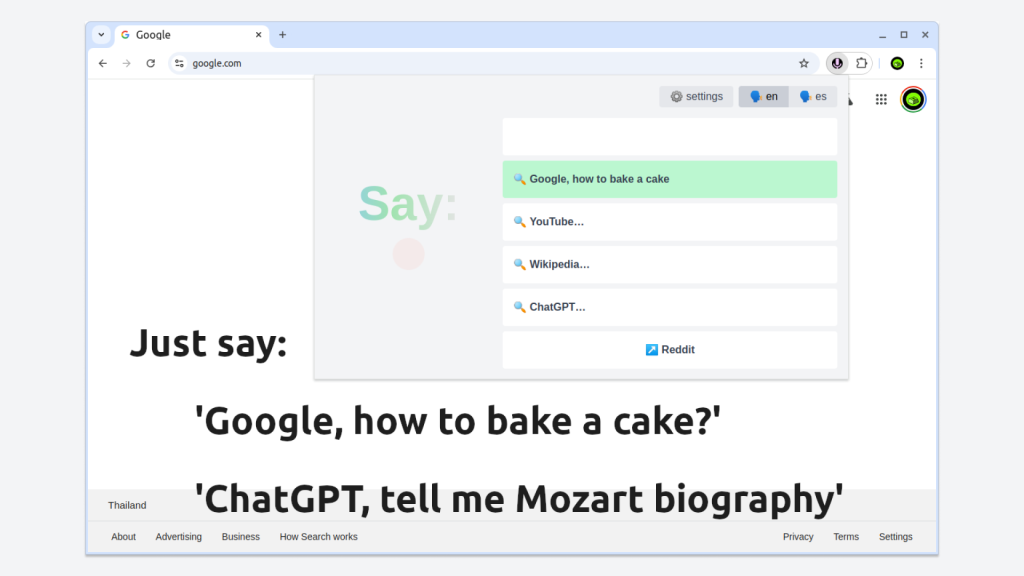 Voice Command is the easiest way to make instant searches, ask AI questions and navigate using your voice.