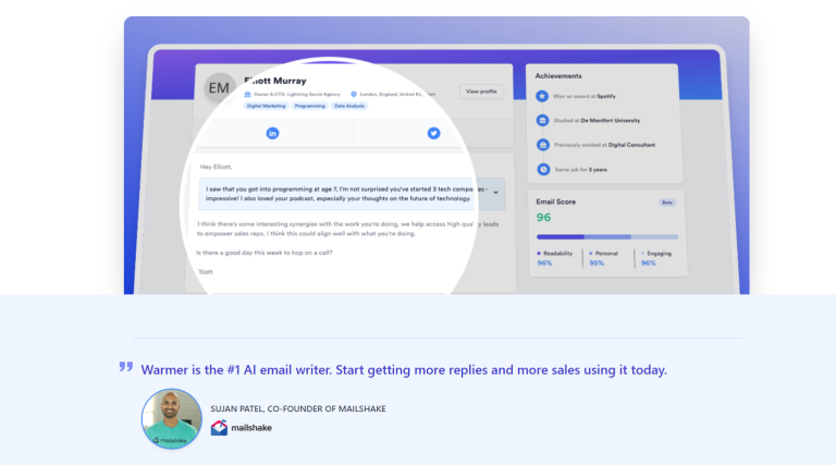 Warmer.ai is a tool that helps you to skyrocket your cold emails with unique personalizations. Get your personalized emails delivered straight to the inbox of your prospects and start conversations with them. Send automated follow-ups, track opens and clicks, and build relationships with customers faster than ever before. By using Warmer.ai, you can create highly targeted campaigns that generate more leads and close more deals.