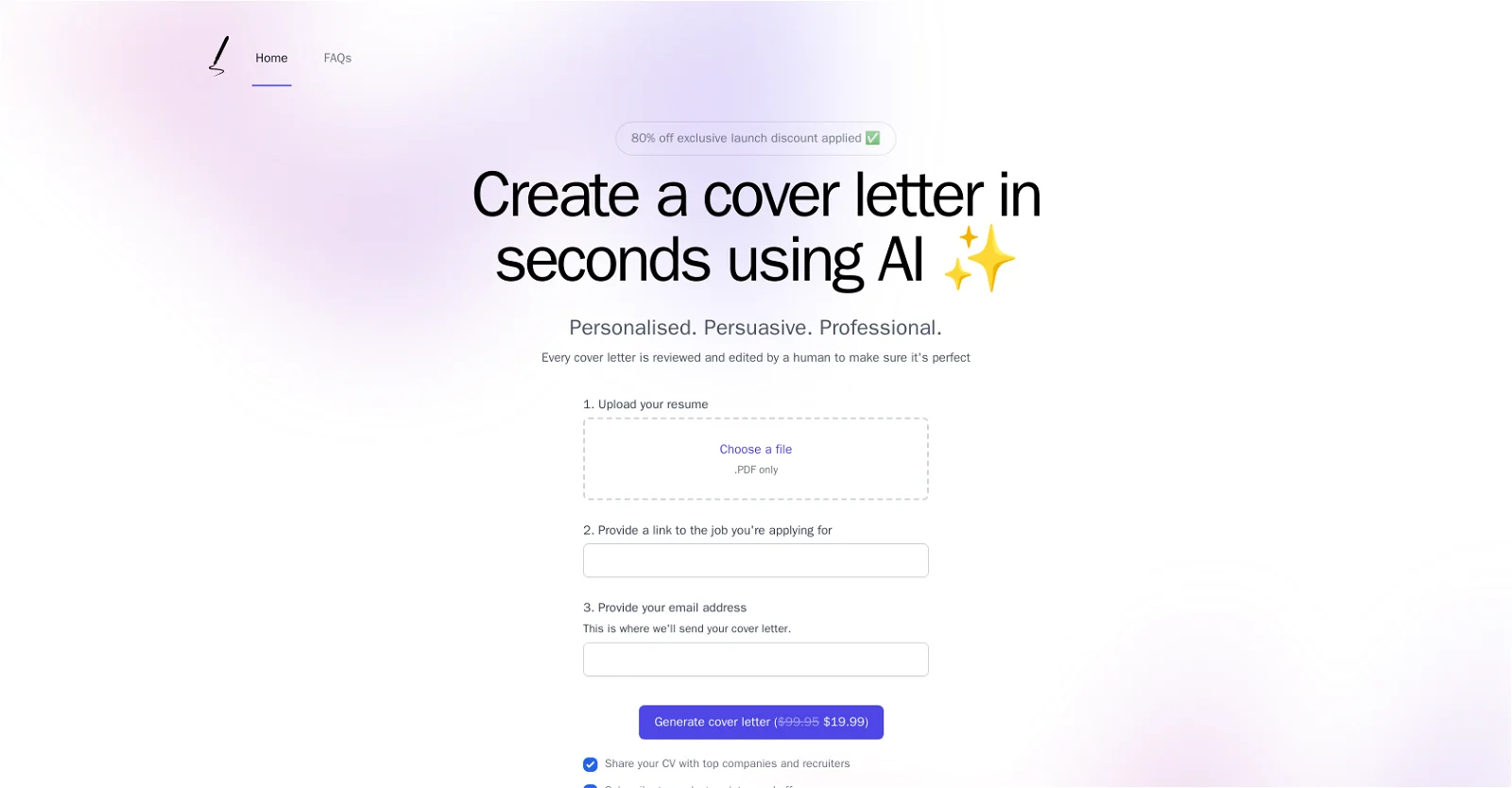Write Me A Cover Letter ai tool is the perfect solution for anyone who’s looking to create a professional and compelling cover letter quickly and easily. This AI-powered tool takes the hassle out of cover letter writing by using natural language processing (NLP) to generate a tailored cover letter in just a few clicks. It’s designed to help you craft a unique and personalized cover letter that is sure to make an impression. With Write Me A Cover Letter ai tool, you can choose from a variety of templates, customize your own, or even upload your own file. The tool also provides helpful tips and advice to ensure that your cover letter is perfect. It’s a great way to make sure your cover letter stands out from the rest and is sure to get you noticed. So if you’re looking for a convenient and effective way to create a cover letter, Write Me A Cover Letter ai tool is the perfect solution.